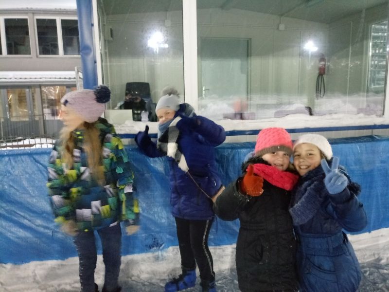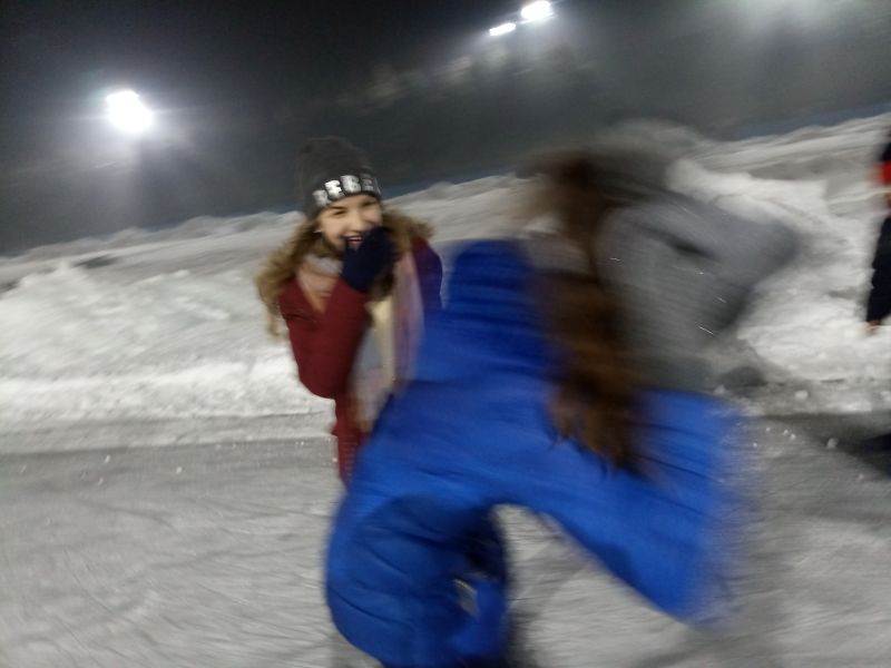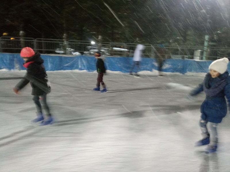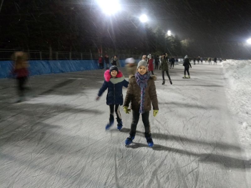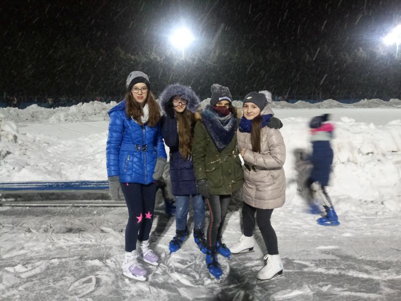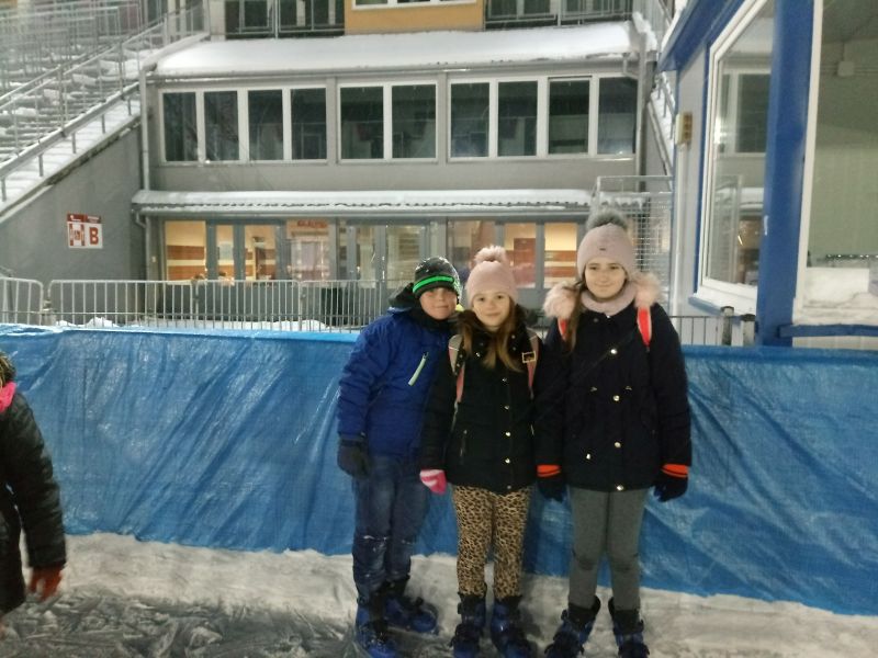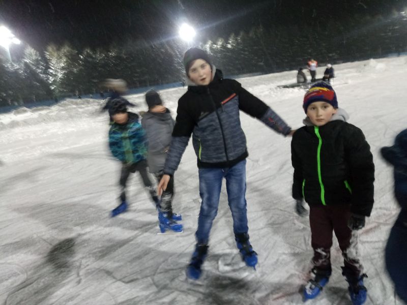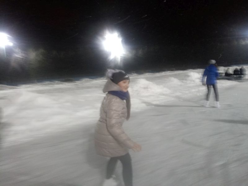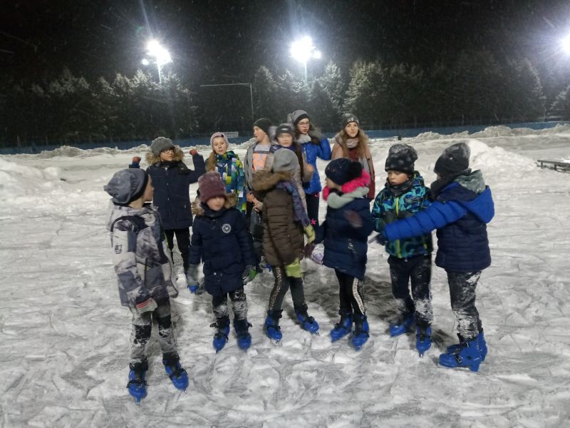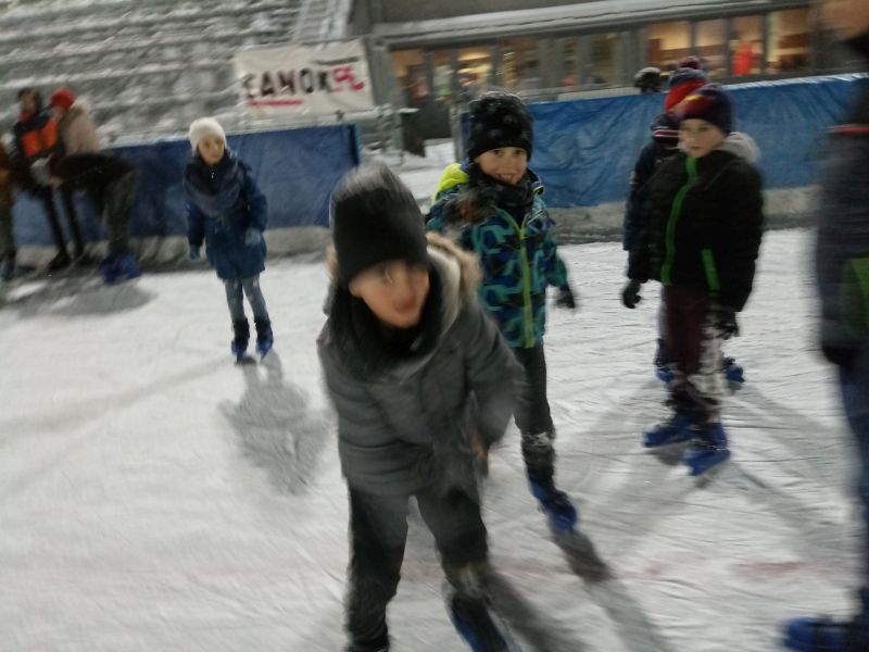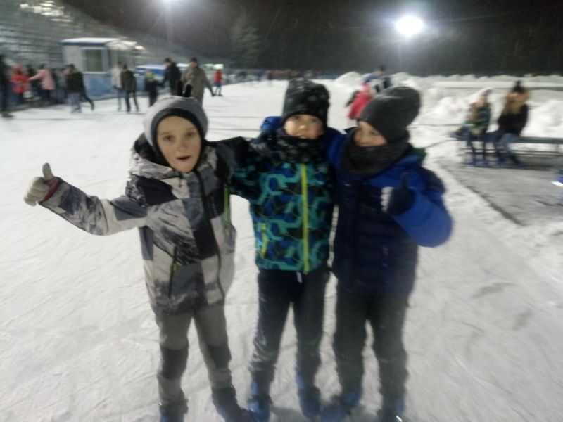 W baśniowej wręcz scenerii odbył się 9 stycznia wyjazd uczniów naszej szkoły na ślizgawkę. Majestatycznie wolno i gęsto opadające duże płatki śniegu na bezwietrznej pogodzie, przy głośno odtwarzanej dynamicznie dopasowanej do jazdy na łyżwach muzyce, tworzyły niezapomnianą atmosferę świetnej zabawy. Nie przeszkodziły w niej nawet liczne upadki na twardy lód. A nieporadne na początku pierwsze kroki, zamieniały się z każdym okrążeniem w coraz większą samodzielność i pewność siebie. Pomimo zmęczenia - 1,5 godziny spędzone w intensywnym ruchu - dobre humory dopisały wszystkim uczestnikom do samego końca. Zobaczymy zresztą, ilu chętnych będzie na kolejny wyjazd za tydzień.